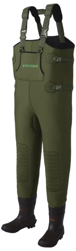- Woods Big Man Neoprene Chest Wader features a flexible, insulated 3.5mm Neoprene structure