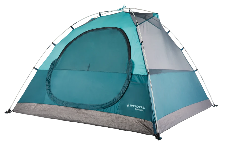 - Woods™ Creekside Tent features reflective guy lines with built-in storage pockets