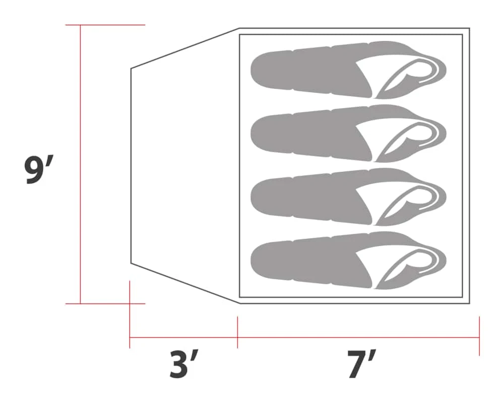 - Accessories List: Gear Shelf, Poles, Rain Fly, Stakes, Stuff Sack