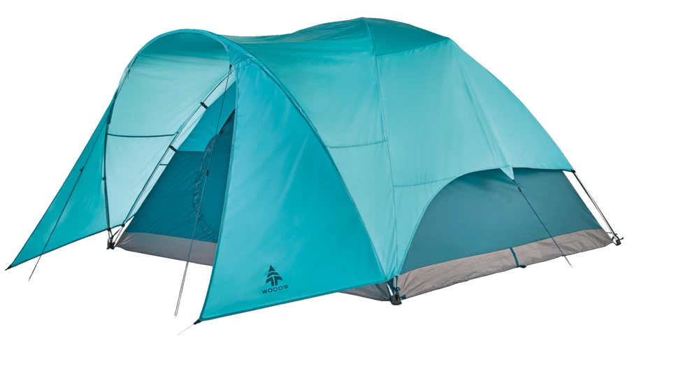 Woods Creekside 3-Season, 6-Person Camping Dome Tent W/ Canopy/Awning, Rain Fly & Carry Bag