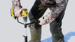 Turn your cordless drill into a lightweight, mobile, and highly efficient ice auger with the Woods E-Drill Ice Auger Combo. Gone are the days of spending time and effort drilling ice fishing holes by hand or struggling with heavy gas-powered augers. With the Woods Ice Auger Combo’s universal adaptor and two adjustable extension clamps, you can easily and securely attach most high torque drills. Powered by the drill, its razor-sharp stainless steel blades punch through ice fast, while its lightweight yet durable auger construction make it an extremely mobile choice for long days chasing fish under the ice.
