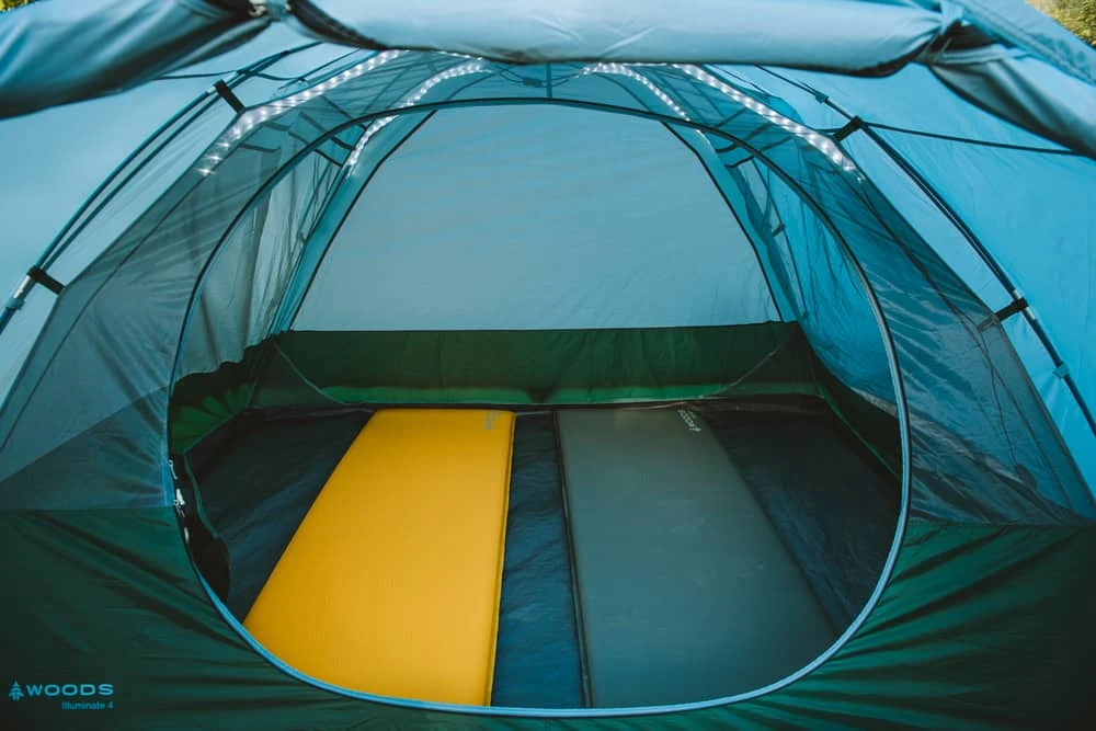 - Woods⢠ILLUMINATE Tent features 1 room that can accommodate up to 4 people