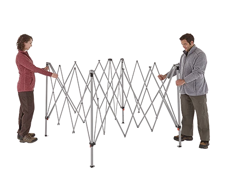 - Woods™ REIGN Camp Gazebo features a one-piece steel folding frame design that allows for easy set-up and take down