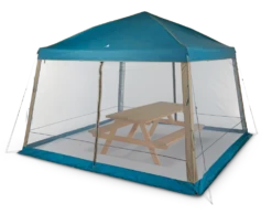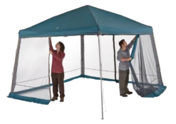 Get some repreive from the sun, rain, or bugs with this portable camp gazebo. Perfect for family gatherings or camp outs, it sets up and takes down almost instantly with a pop-up design. Water-resistant and silver coatings provide excellent weather and UV protection while mesh panels and wide side skirts keep the bugs out.