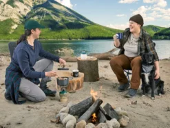 - Woods™ Selkirk Anodized Camping Cook features 2 pots with lids (2.2 L and 1.2 L), 1 frying pan (7.5″), 1 kettle (800 ml)