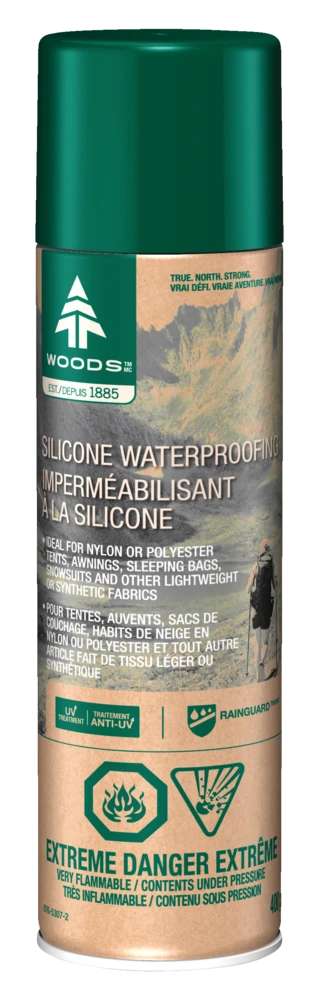 - Woods™ Waterproof Silicone Spray is ideal for outdoor gear and fabrics